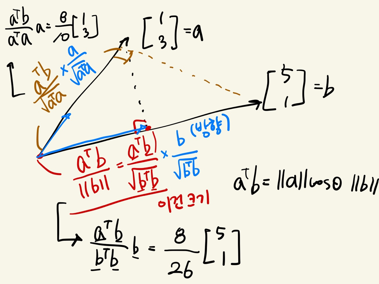 그것에 b의 방향벡터를 곱하면 벡터 a와 b의 dot product이다.