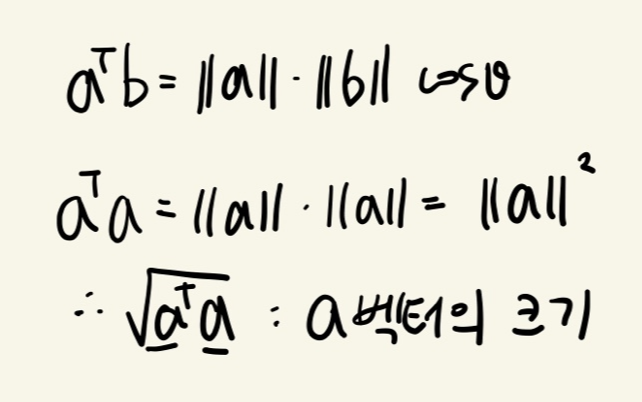 a^{T}a 는 벡터 a의 크기의 제곱과 같다.