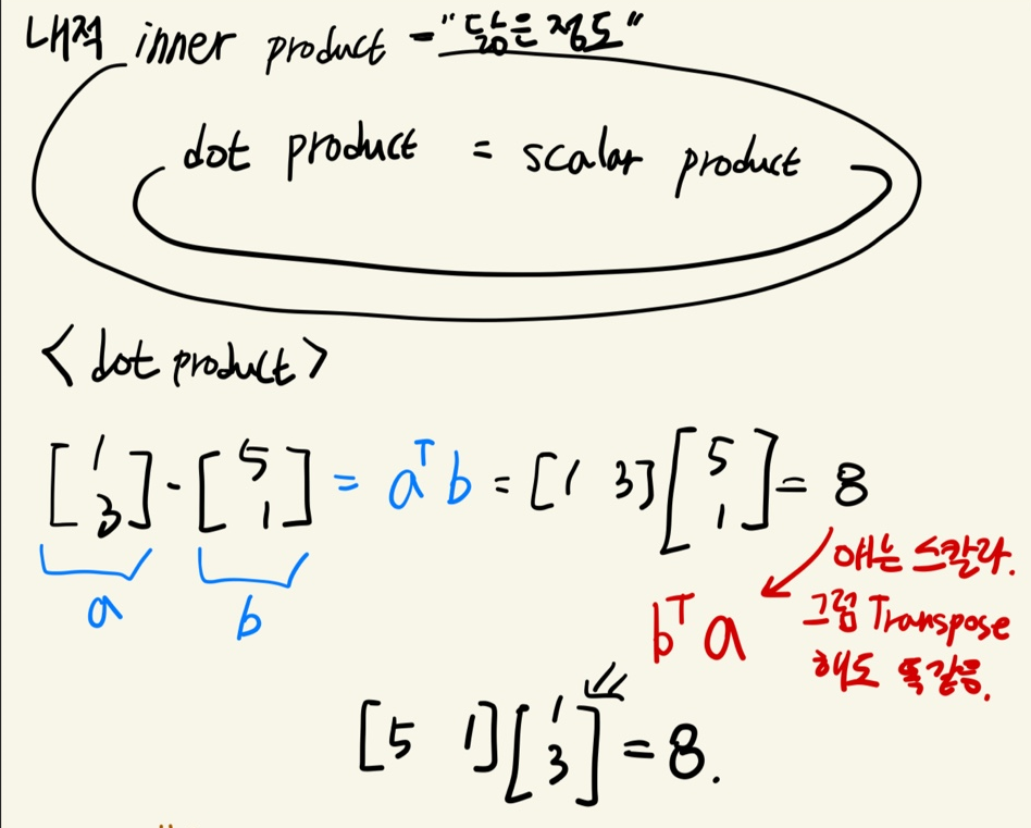 그러나, 이 강의에서는 내적과 dot product를 비슷한 개념으로
