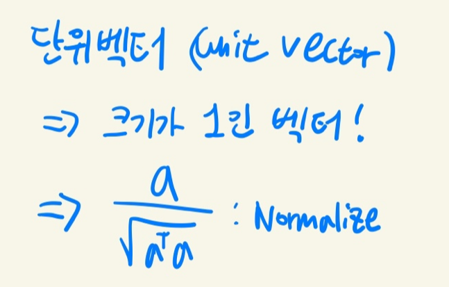 벡터 a의 방향을 나타내는 단위벡터도 구할 수 있다.