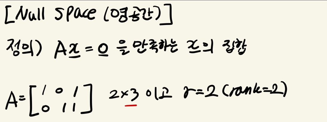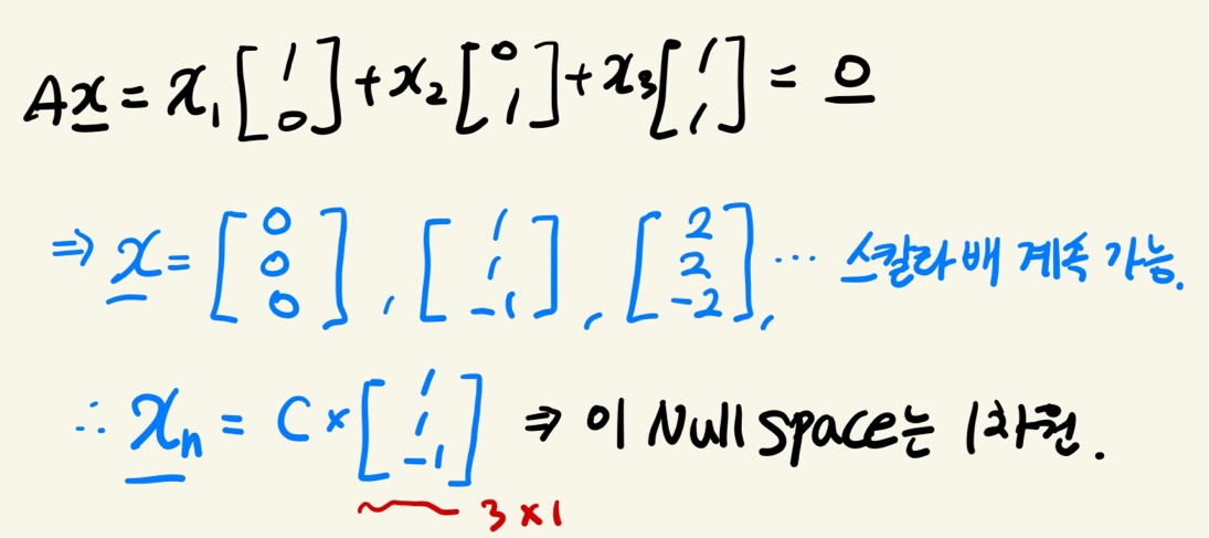 이 x의 차원은 1차원이므로, Null Space 역시 1차원이다.