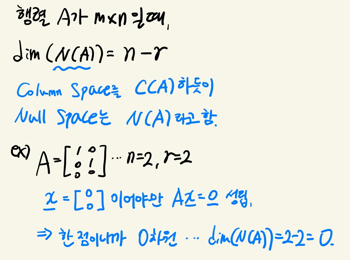 dim(N(A)) = 2 - 2 = 0 이라는 해석도 가능하다.