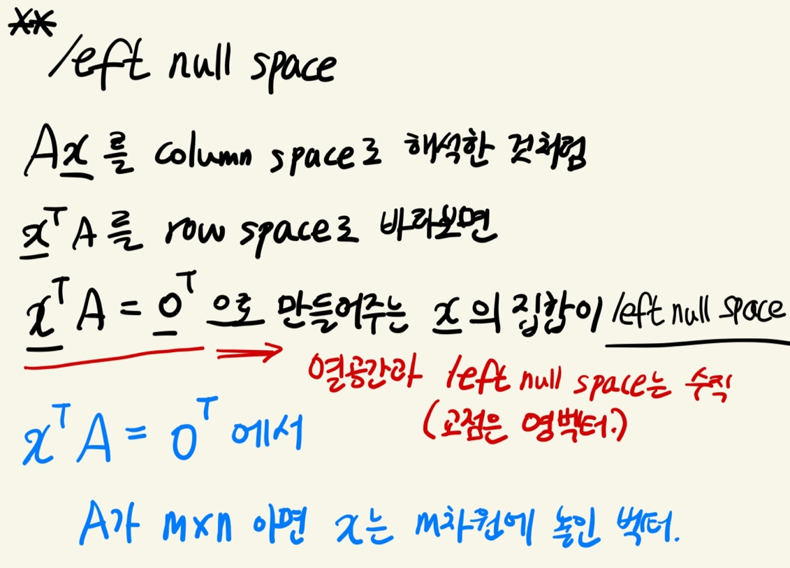 **참고로, Ax = 0과 달리 x의 전치행렬이 왼쪽으로 왔으니 "left" null space 이다.