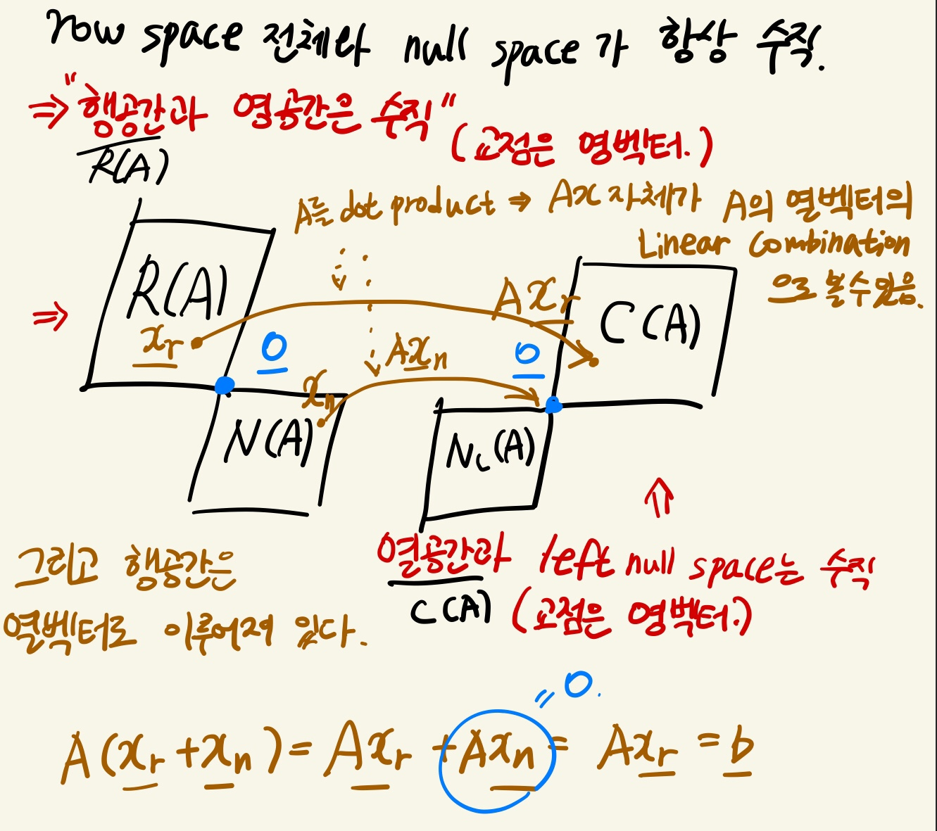 Ax = 0에선 row space와 Null space가 서로 수직했던 것처럼