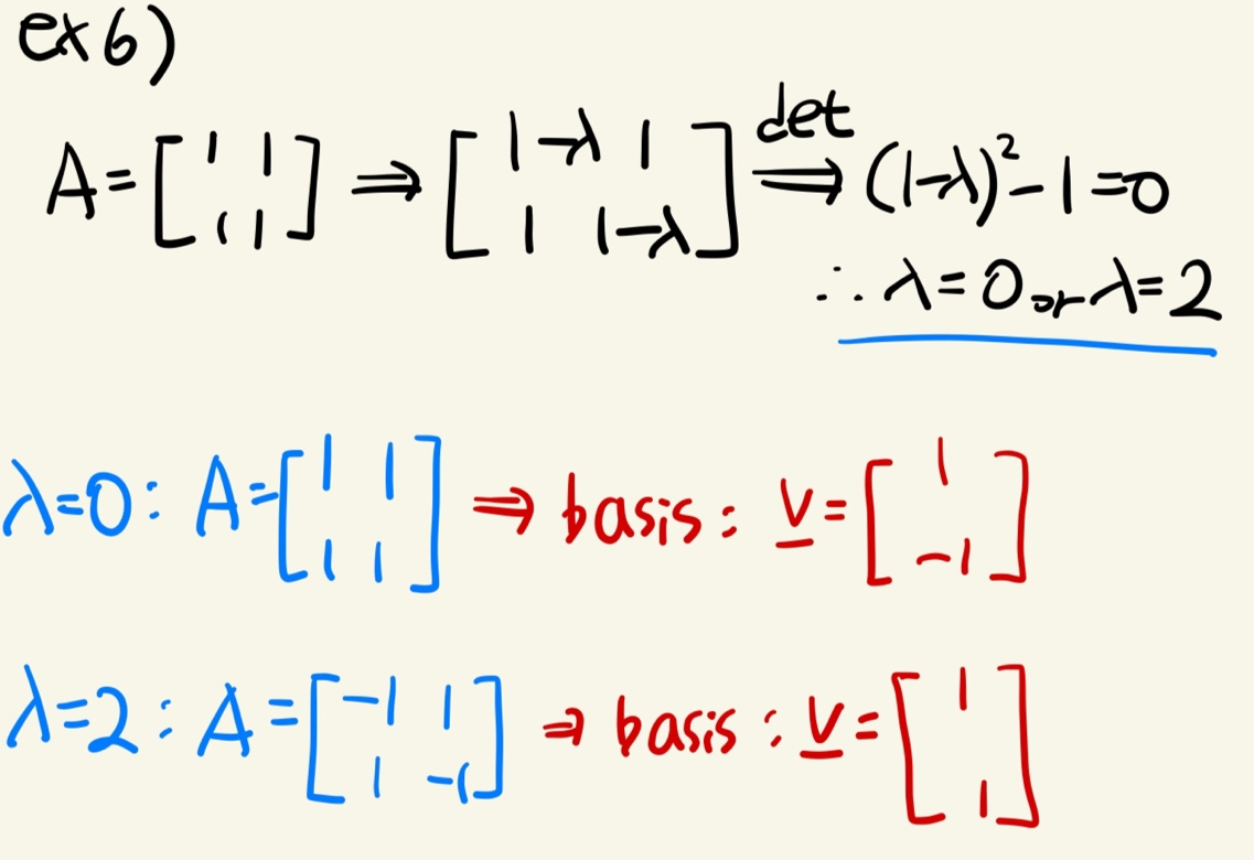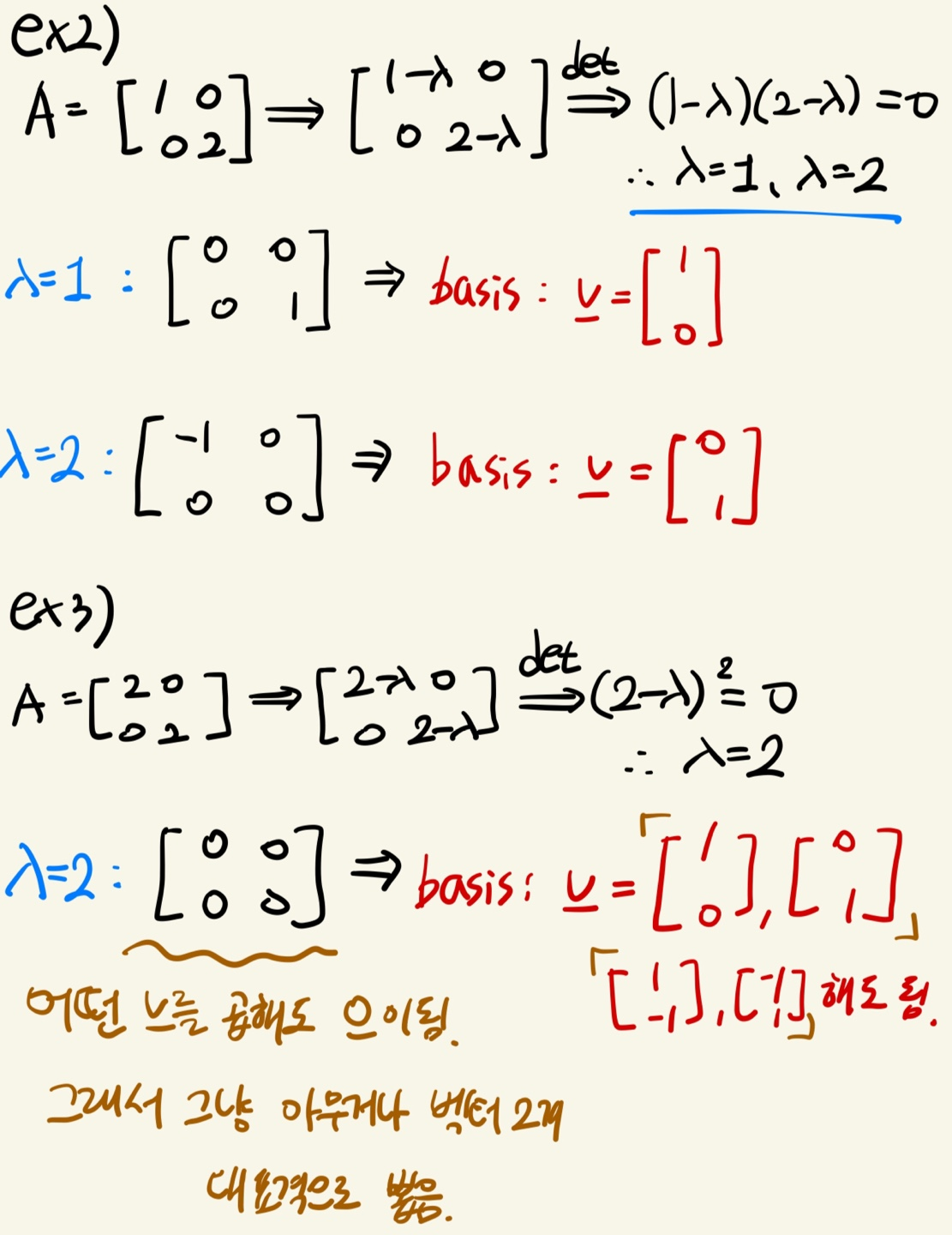 여러 예제들을 풀어보면 고윳값과 고유벡터를 구하는 과정을 익힐 수 있다.