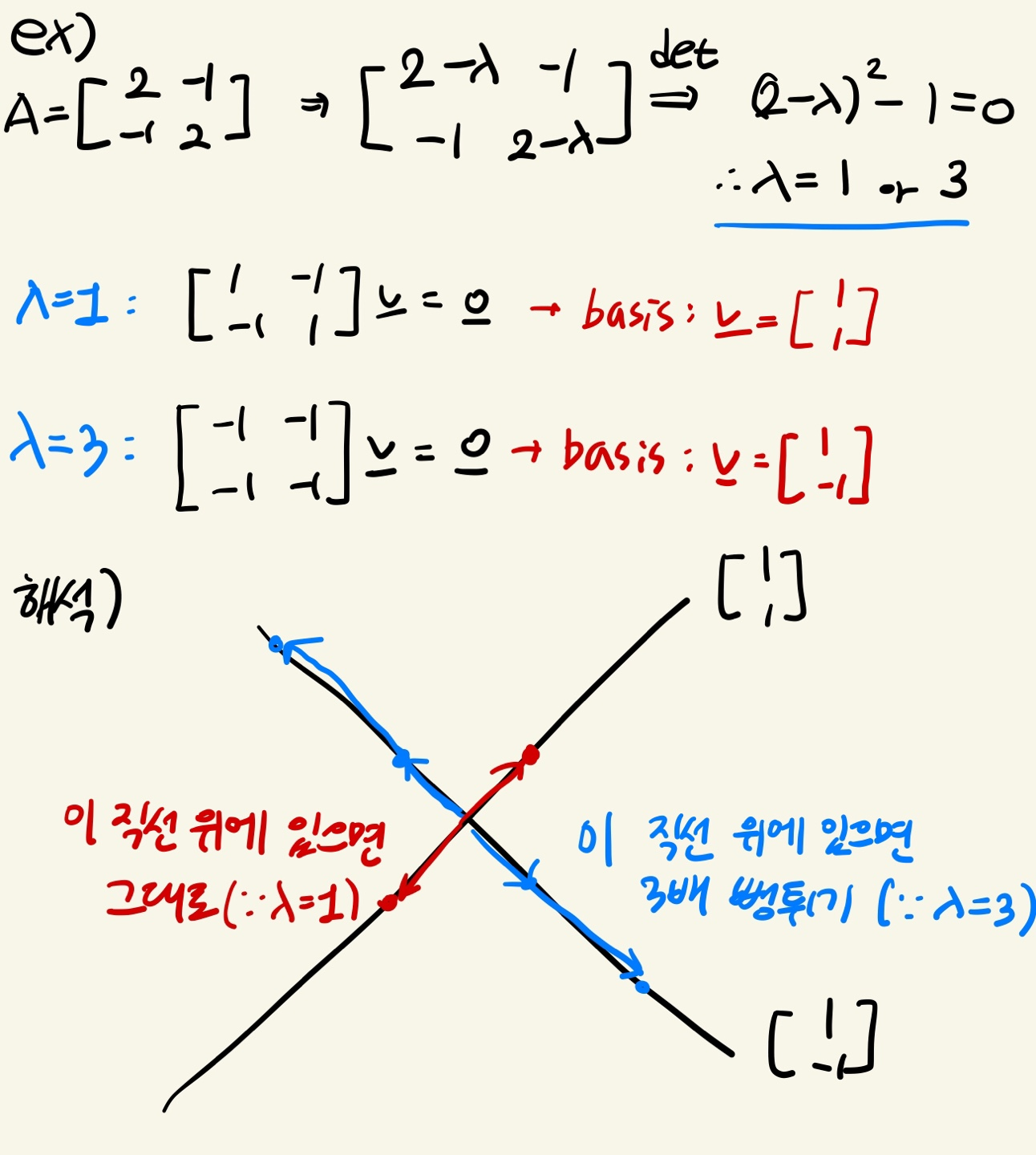 특히, 고유벡터는 basis만을 취한다는 것을 알 수 있다.