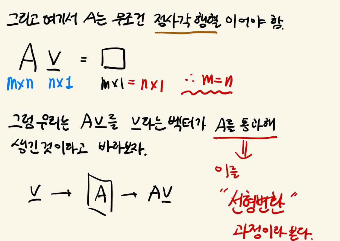 Av라는 결과가 나왔다고 생각하자. 이를 선형변환 과정이라 본다.