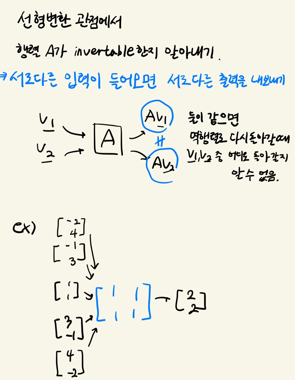 선형변환 관점에서 행렬 A가 invertable한지 보는 것은 간단하다.