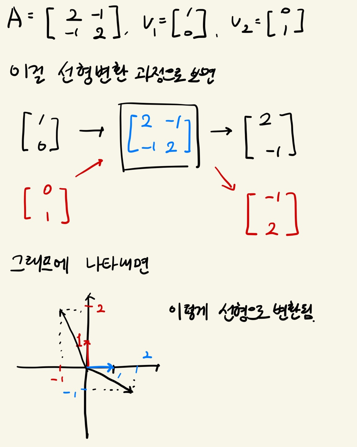그러면 이 과정을 v라는 벡터가 행렬 A를 통과해
