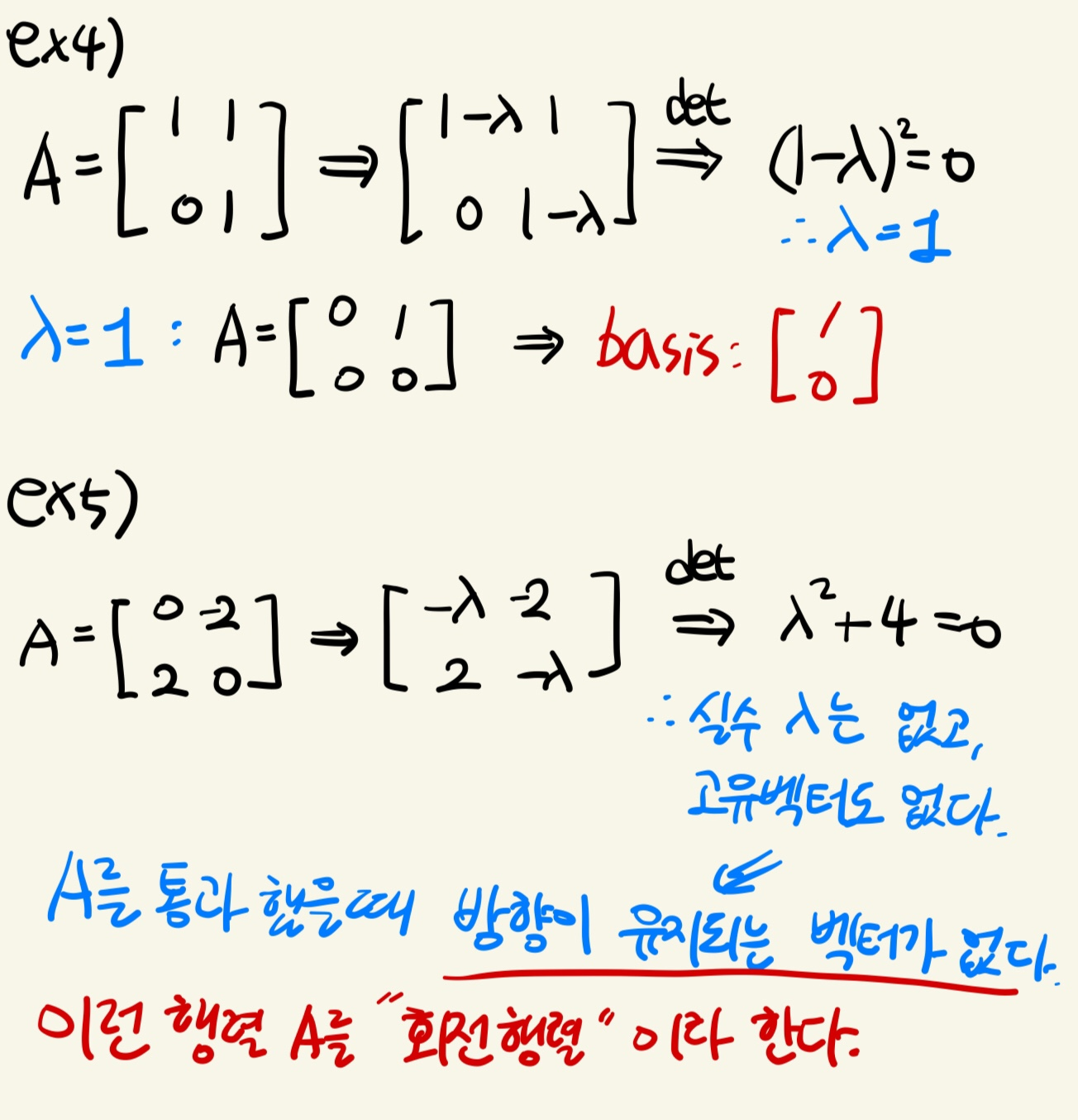 만약 예제 5번처럼 고윳값과 고유벡터가 모두 없다면