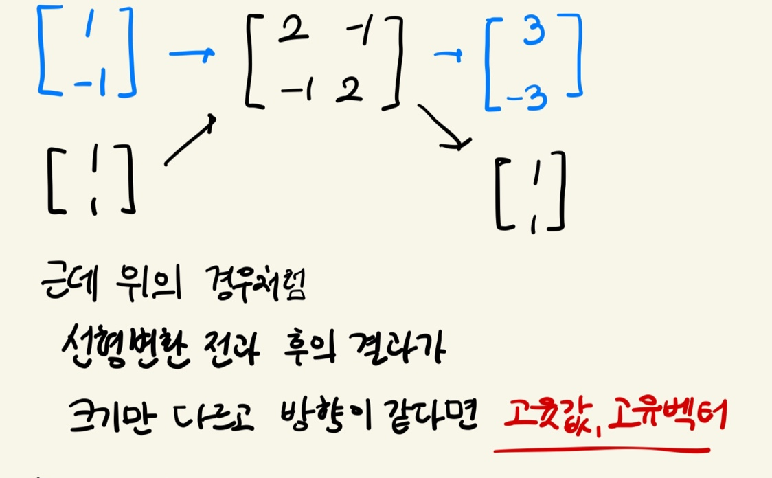 이 경우가 바로 고윳값과 고유벡터가 나오는 순간.