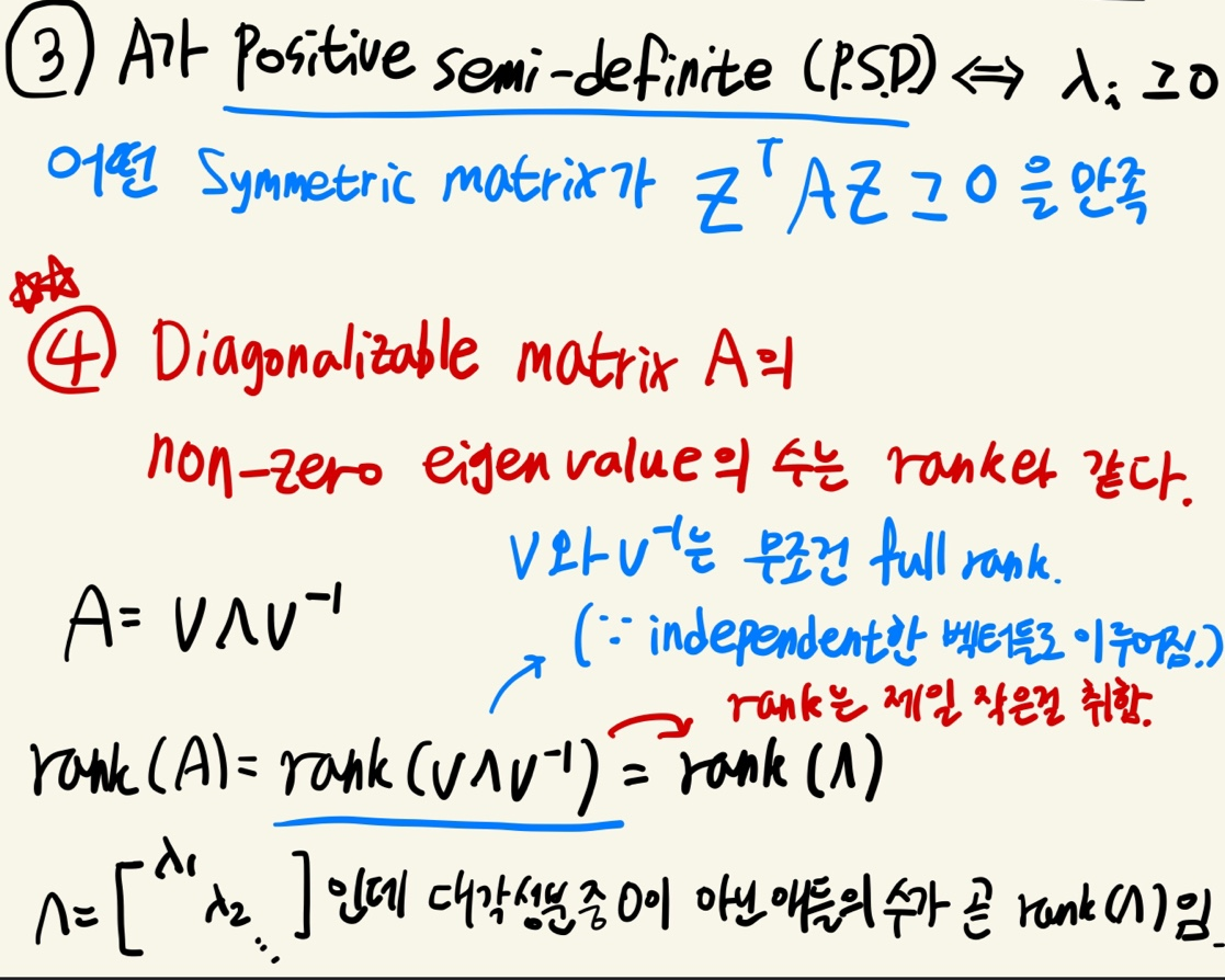 ③ A가 P.S.D라는 것은 모든 고윳값이 0 이상인 것과 동치이다.