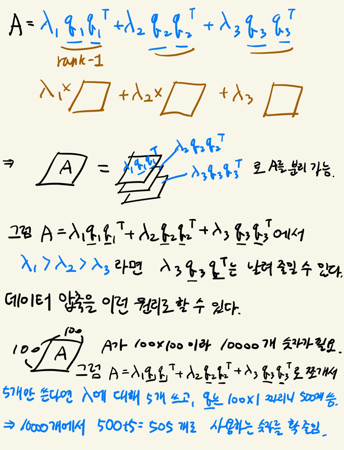 과 같이 A를 rank-1 행렬들의 합으로 나타낼 수 있다.