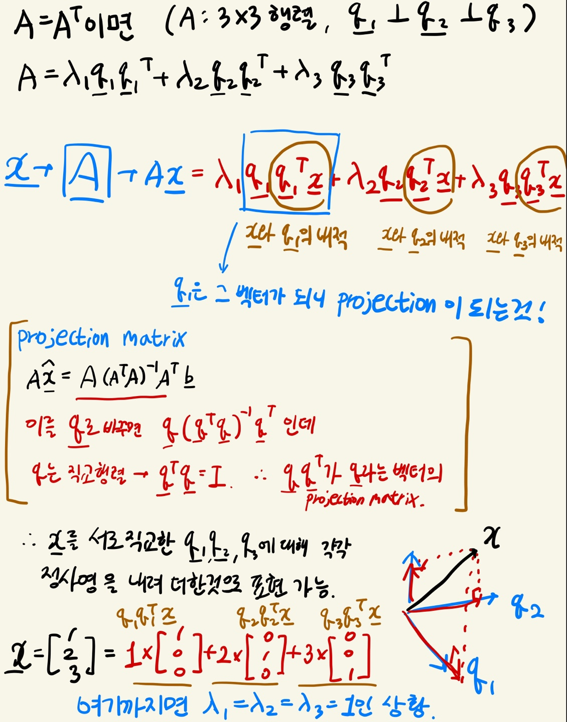 $$A=\lambda_{1}q_{1}q^{T}_{1}+\lambda_{2}q_{2}q^{T}_{2}+\lambda_{3}q_{3}q^{T}_{3}$$