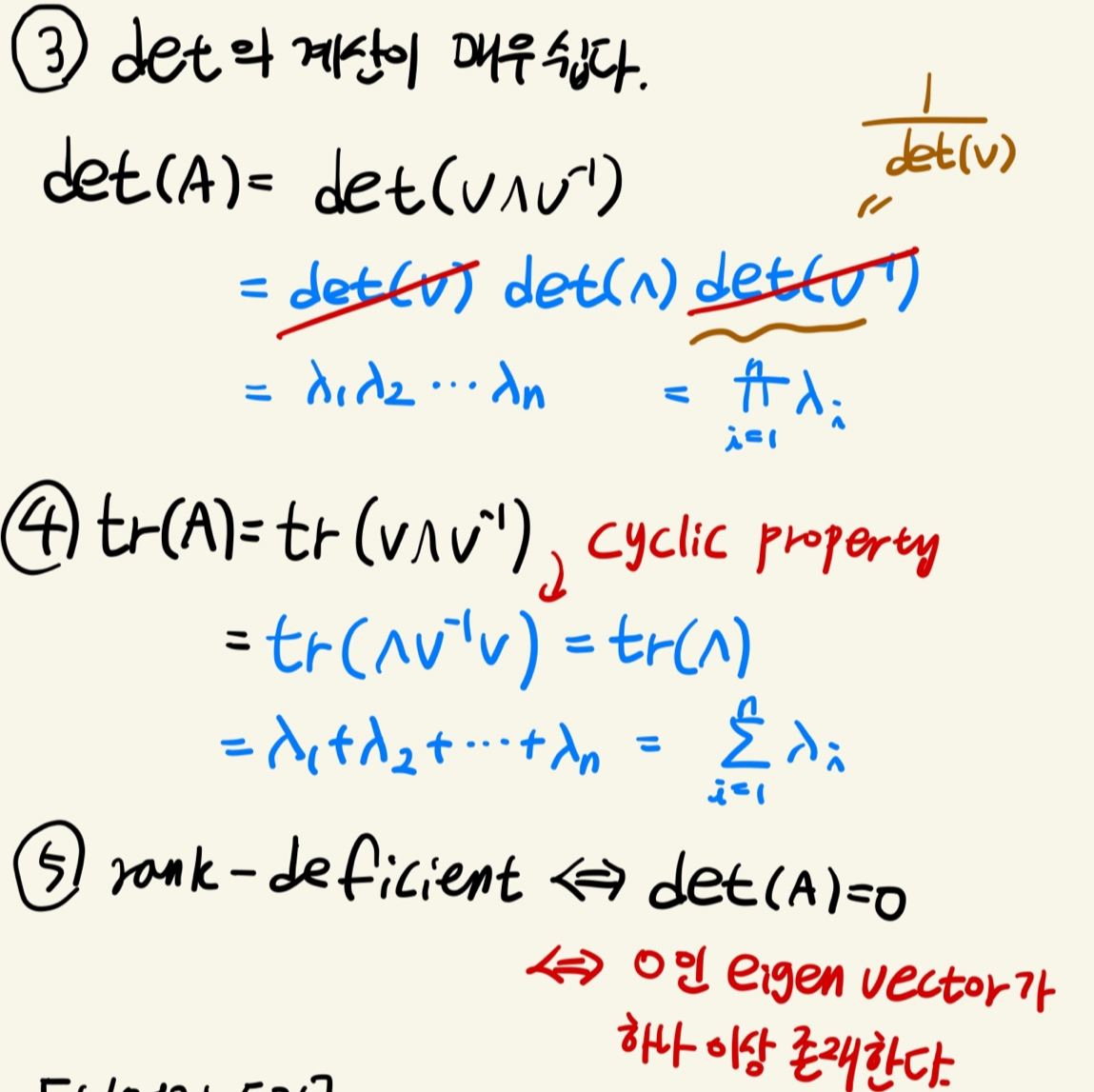 ⑤ rank - deficient 하면 det(A) = 0인데,
