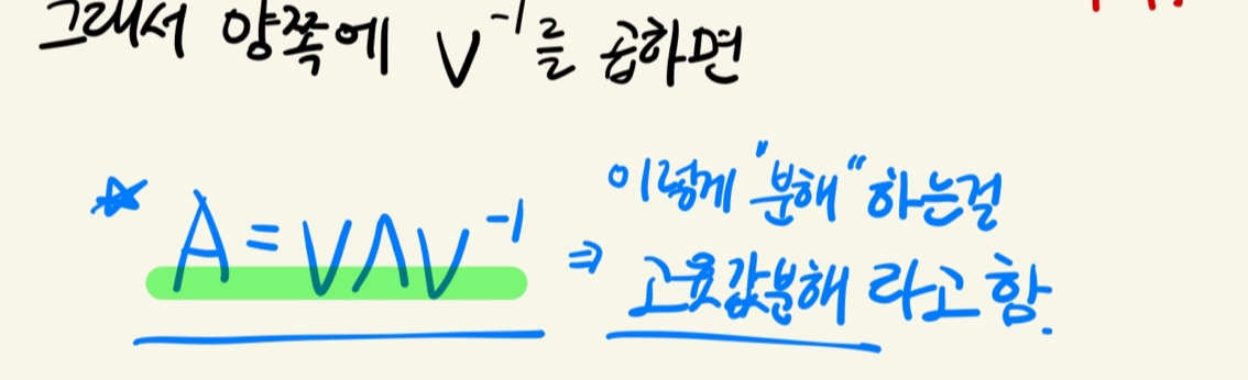이와 같은 형태로 A에 관해 식을 정리하는 것을 고윳값 분해라 한다.