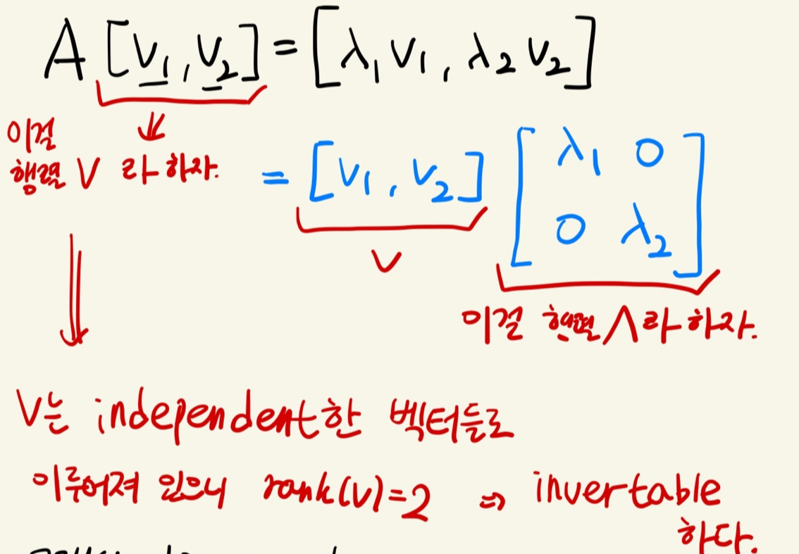 그러면 V는 고유벡터들로 이루어진 행렬이므로 각각 independent 하니