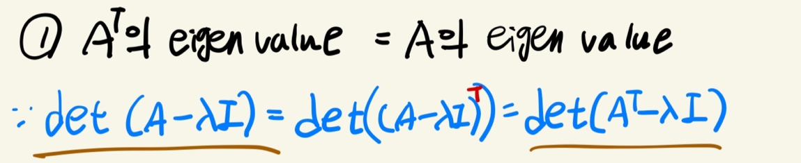 ① A의 고윳값은 A의 전치행렬의 고윳값과 같다.