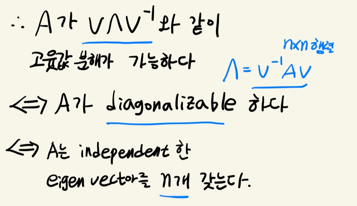 그리고 A는 independent한 eigen vector를 n개 갖는다는 것과 동치이다.